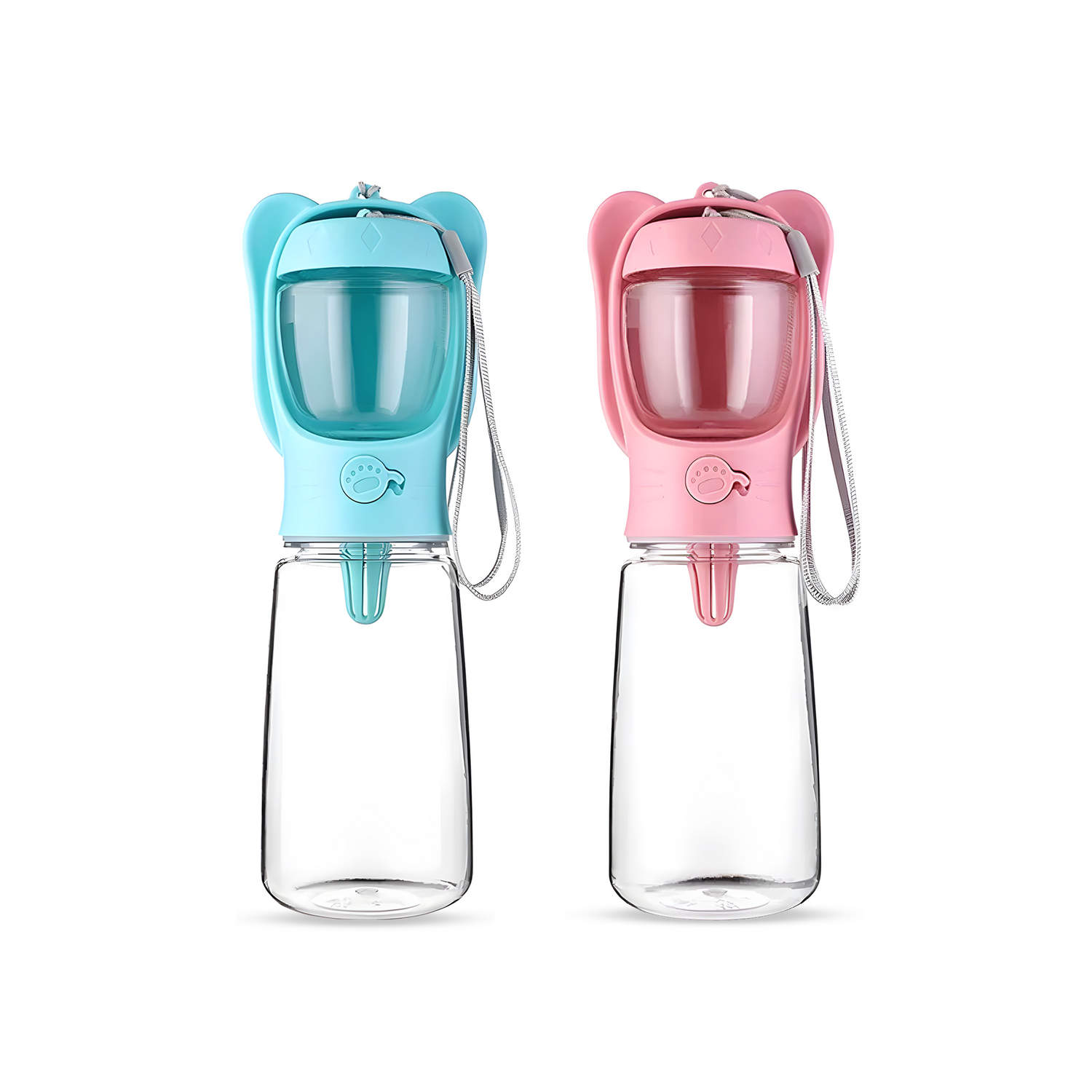2-in-1 Pet Water Bottle & Feeder (550ml) – Portable Hydration for Pets | Pink & Blue